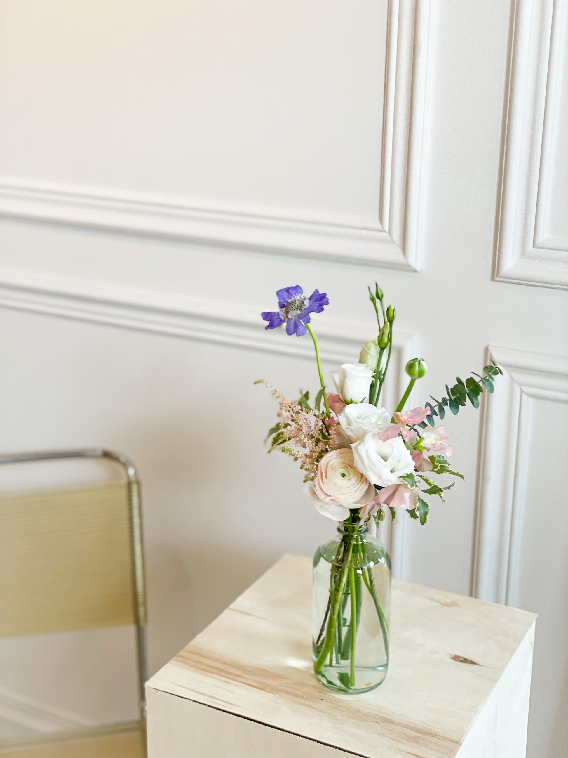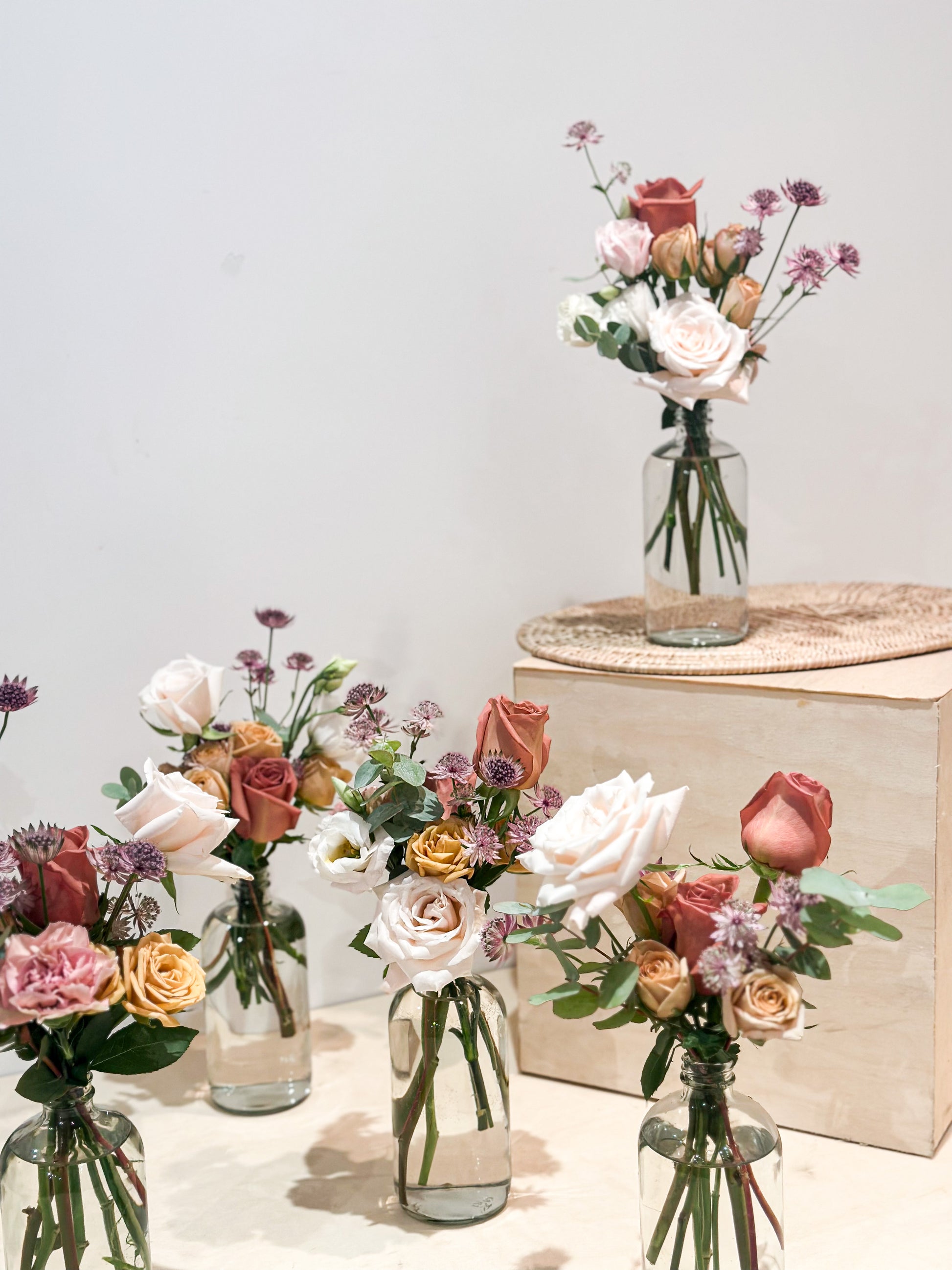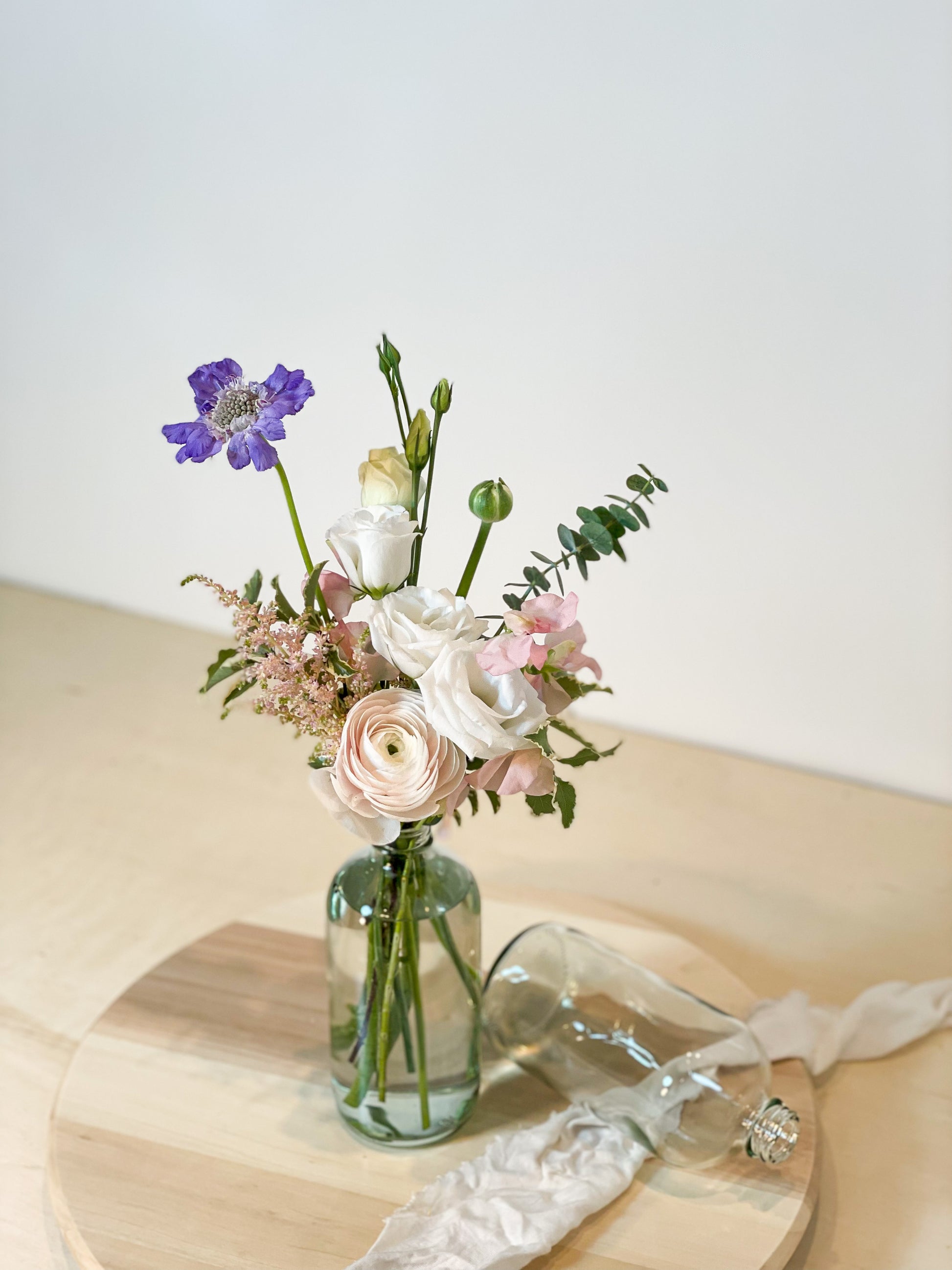 Fresh bottle arrangements using our weekly florals. Note that what you receive may look a little different than images shown but we promise it'll be just as good!